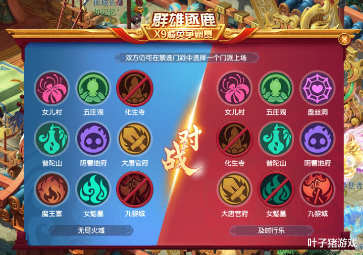 在禁选阶段,【无尽火域】被禁化生、九黎,【及时行乐】被禁化生、女魃。根据禁选规则,双方可以选择一个门派复活。