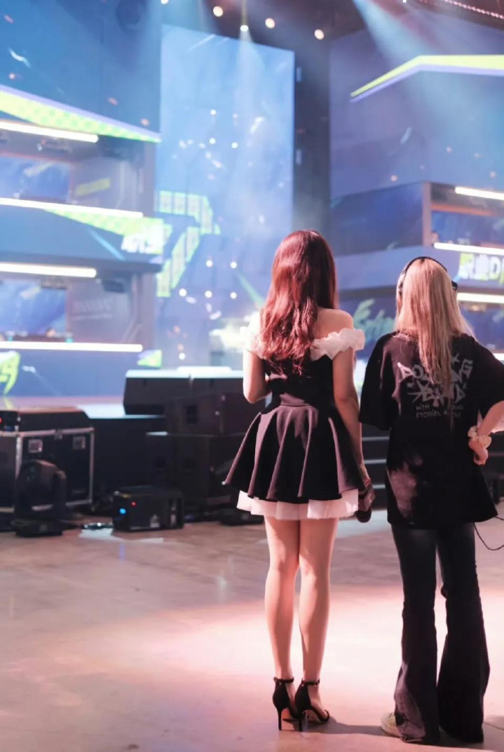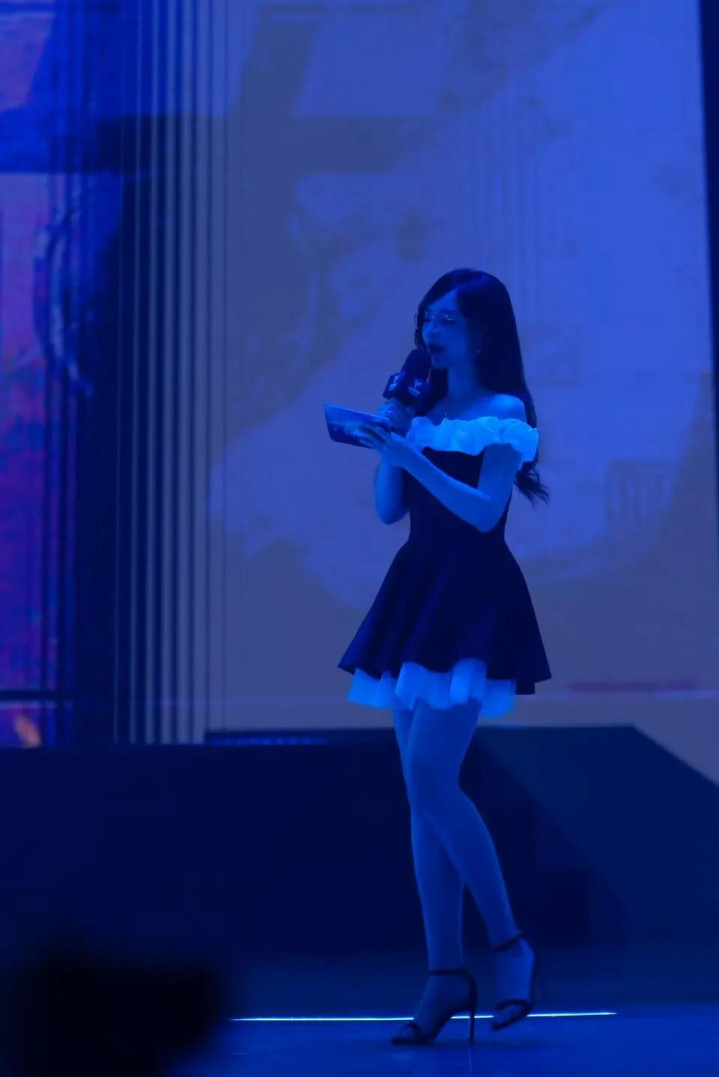 余霜阿姨现场小短裙高跟真有韵味, 眼镜一带太有反差感了