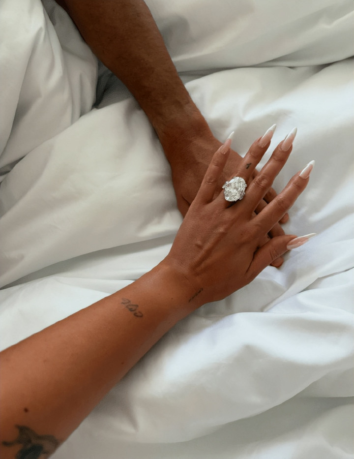 当那颗估值700万的10克拉钻戒刷爆热搜时,全网都在喊:“乔治娜这九年值了!”北京时间8月12日,31岁的乔治娜甩出王炸级官宣——晒出与C罗十指紧扣的照片,无名指上鸽子蛋闪着夺目光芒,配文更是甜度爆表:“是的,我愿意,今生今世,生生世世!”