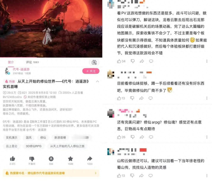 截止发稿,截止发稿,该游戏目前发布的PV播放量已达29.5万,不少玩家的反馈都很不错。