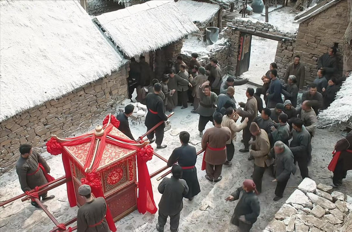 他虽然没钱,但是却信守承诺,八抬大轿,喜轿绕村三圈,风光迎娶。