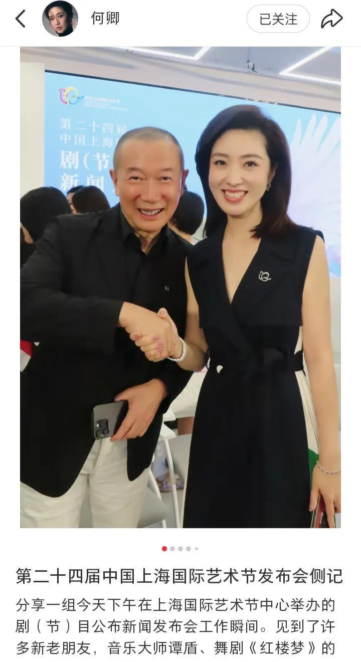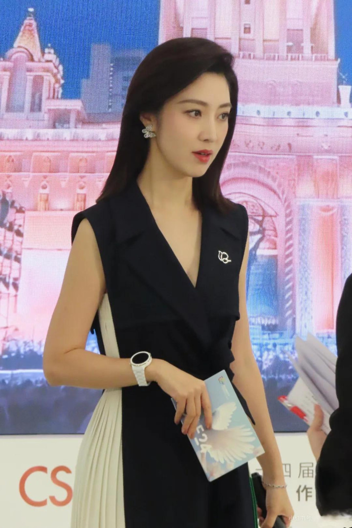 何卿亮相艺术节发布会, 无袖黑裙穿搭简约又高级