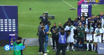 赛后颁奖仪式: C罗领取亚军奖牌, 吉达国民全队捧起沙超杯