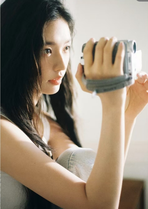 林允拿着相机记录下当下的美好,认真拍照的模样分外迷人养眼。