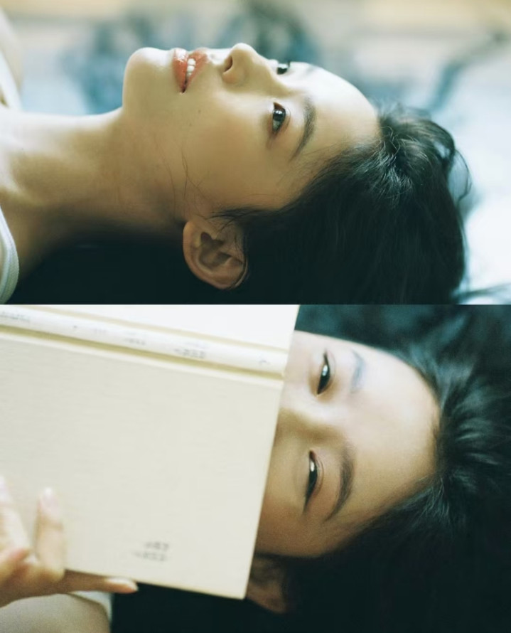 林允躺在地方上望着镜头,这个视角将林允的美完美展示。林允的脸蛋儿小巧精致,天鹅颈优越十足,锁骨以及直角肩同样惹眼得很。看得出来,林允在保持美貌和身材上,真的是下足了功夫。