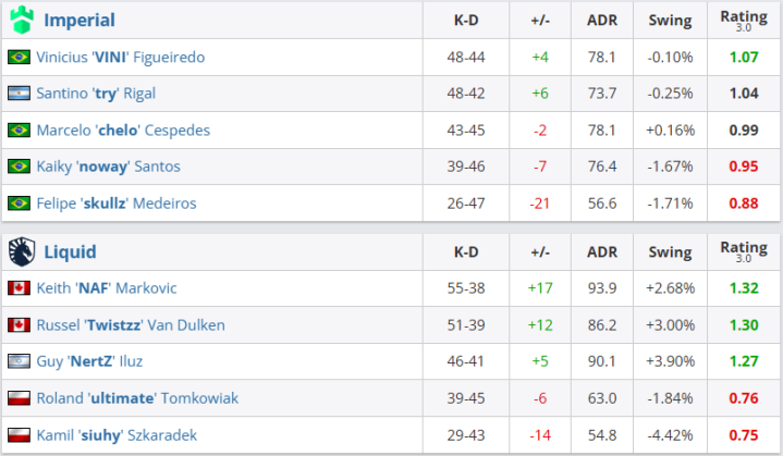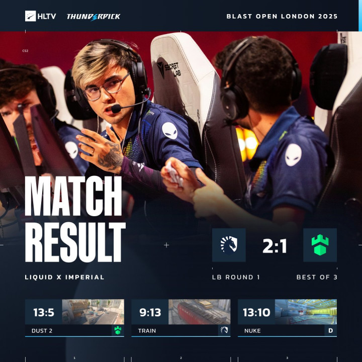 败者组方面,Liquid与FlyQuest均各自鏖战三图取胜,并分别淘汰两支巴西战队Imperial和Legacy。