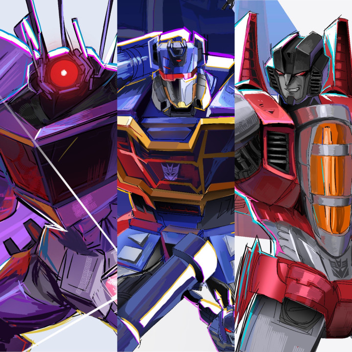 在赛博坦的烽火与游戏引擎的光效碰撞之处,一场属于霸天虎的狂潮正席卷而来。声波、红蜘蛛、震荡波 —— 这三位《变形金刚》宇宙中极具代表性的霸天虎巨头,在IBI的笔下以游戏联动插画的形式,在虚拟与科幻的边界上,演绎出全新的狂派传奇。