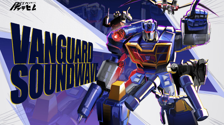 插画中,声波以充满机械张力的姿态矗立,周身环绕着激光鸟等磁带部队。作为霸天虎的情报指挥官,他在游戏联动的设定里,绝非仅仅是战力单位 —— 那肩甲上跃动的红光,是赛博坦科技与游戏数据流的融合,象征着他将情报战的维度从宇宙战场拓展至游戏世界。