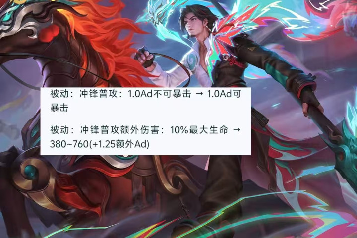 所有被动及主动技能造成的10%最大生命值伤害加成,全部修改为额外AD加成。这意味着,关羽以后的出装将不适配任何肉装,现在的冰霜冲击、红莲斗篷等都会被替换掉,而是会换成攻击装备,而且不局限于暗影战斧、强者破军等,极有可能是带有暴击属性的装备,如宗师之力等,而且应该会高度绑定,至于原因在稍后会讲到。