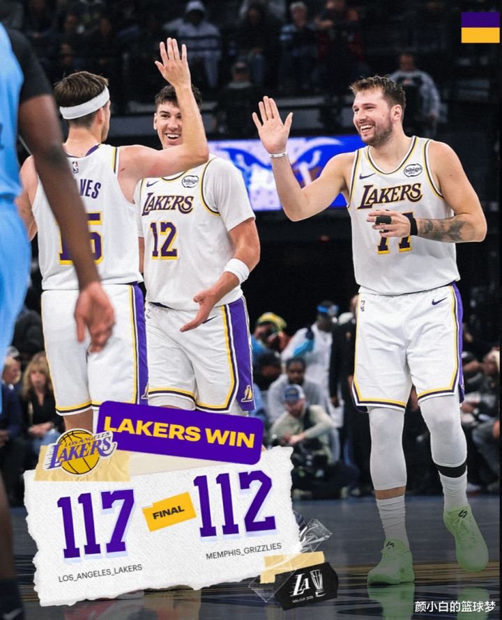 北京时间11月1日,NBA杯赛,湖人以117-112击败灰熊拿到二连胜。这场比赛湖人一度落后灰熊15分之多,但依靠第三节的努力缩小到2分,末节更是直接一波流带走比赛,东契奇再度拿下40+的数据,里夫斯数据虽然下滑但依旧完成20+。