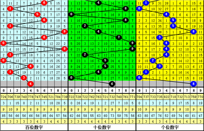 其中,百位奇偶比为4:4,大小比为4:4,本期百位一码参考4。