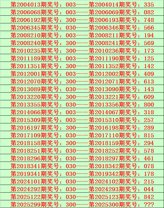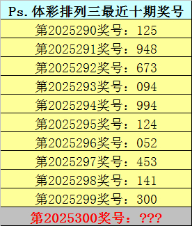 开奖回顾:体彩排列三第2025299期奖号为:300,类型:组三。