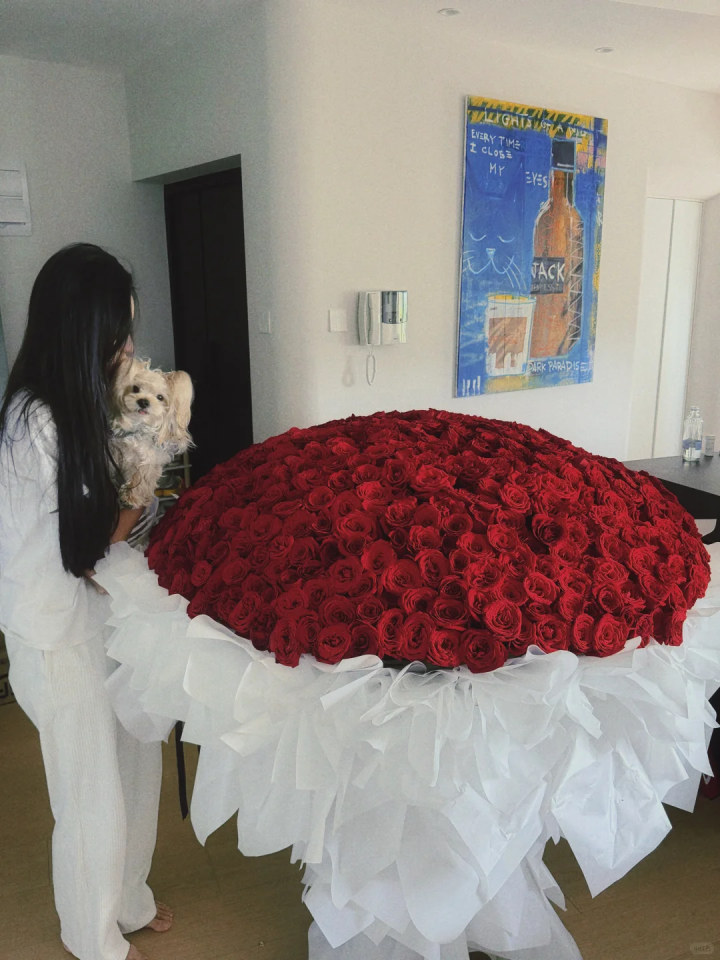 除了精致的草莓奶油蛋糕之外,蔡卓宜还收到了一份特别的生日惊喜——999朵巨型红玫瑰浪漫花束,不知是否出自身边仰慕者之手?