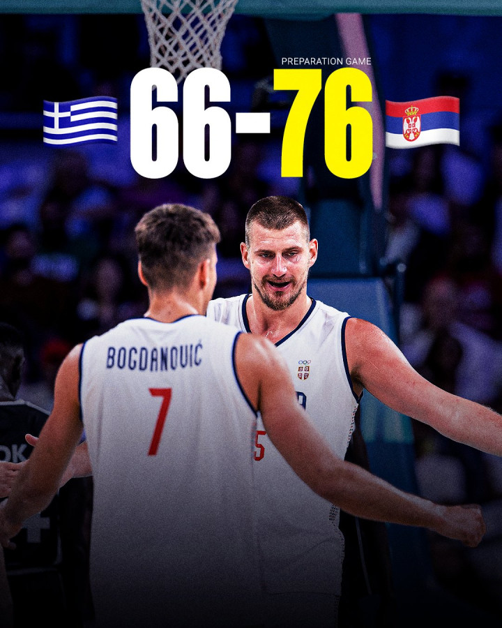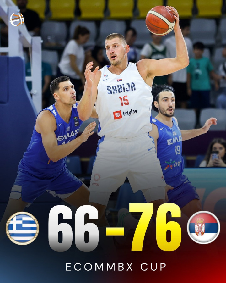 在塞浦路斯ECOMMBX杯的较量中,塞尔维亚凭借第二节的攻势奠定优势,四节比分依次为——首节26-26,第二节17-8拉开分差,第三节12-13以及末节21-19,最终塞尔维亚以10分优势击败希腊;约基奇打出无解表现,多次在禁区一打多强硬得分,上半场拿到10分9篮板3助攻,下半场更是独砍13分10篮板继续打爆希腊内线。
