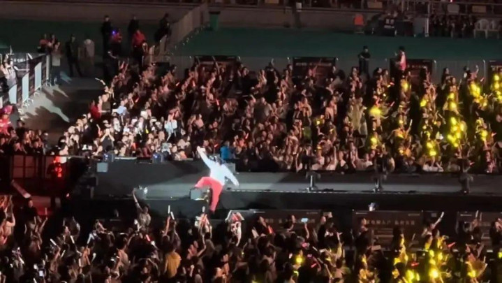 一开始周围离得近的粉丝发现了这个情况,也大声呼喊过,只是声音都被高昂的音响给掩埋,最终只能眼睁睁看着杨宗纬摔倒。