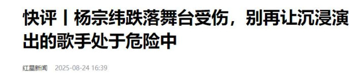 8月23日,知名歌手杨宗纬在舞台上突发事故摔倒,现场的视频也让人看得触目惊心。