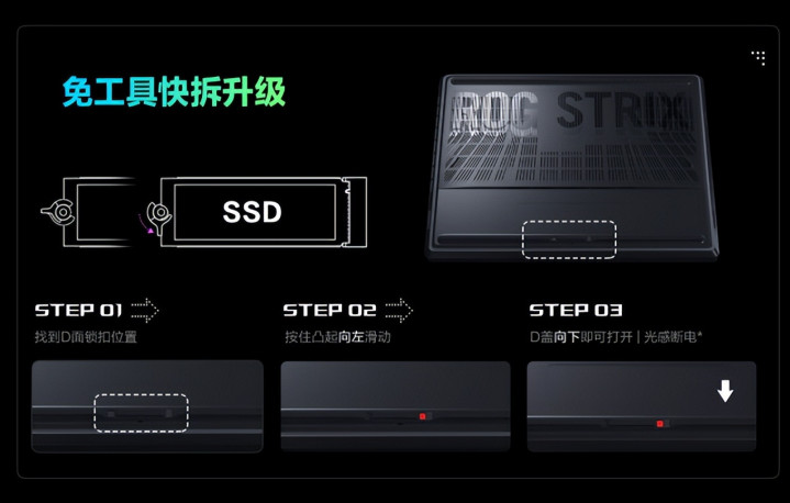 D面免工具快拆设计也是其一大亮点,配合光感断电技术,玩家可以在30秒内完成内存、硬盘的更换。无论是想要增加内存还是更换更大容量的硬盘,都能轻松实现,为玩家提供了极大的便利。