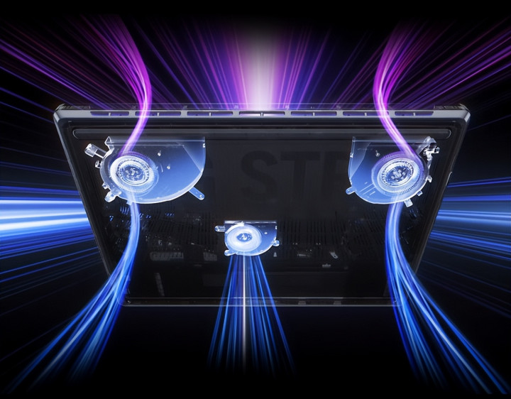 高强度战斗中,硬件发热在所难免。ROG枪神9 Plus采用冰川散热架构3.0增强版,立体进风设计配合大面积真空腔均热板与暴力熊二代液金,能快速导出热量。还有智能降噪技术,低负载模式下被动散热,提供安静的运行环境;风扇防尘网设计,过滤碎屑,延长散热模组寿命。