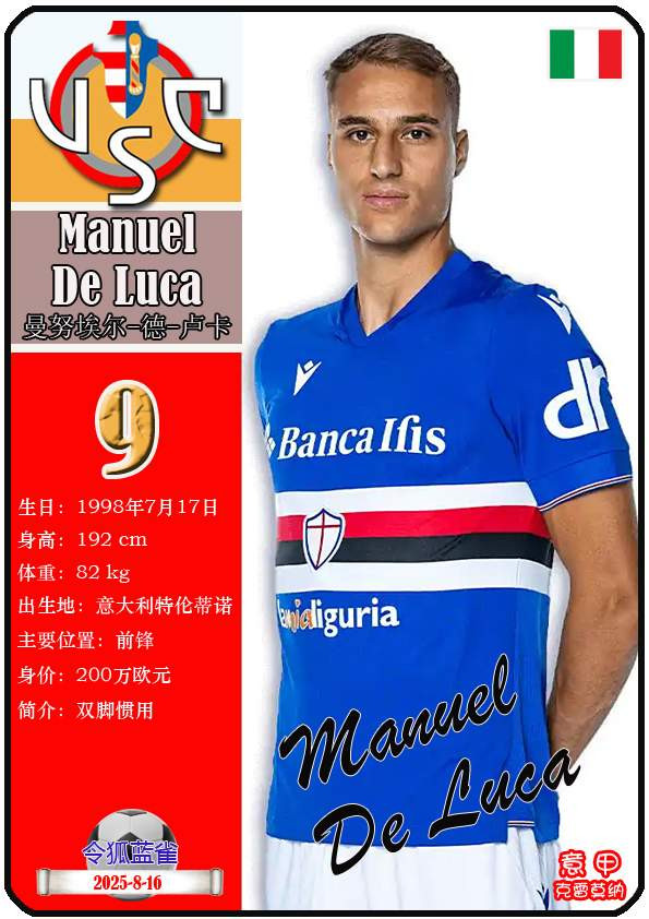 9 曼努埃尔-德-卢卡(前锋/意大利)