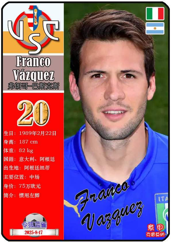 20 弗朗哥-巴斯克斯(中场/意大利-阿根廷)