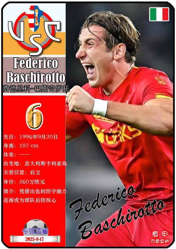 6 费德里科-巴斯奇罗托(后卫/意大利)