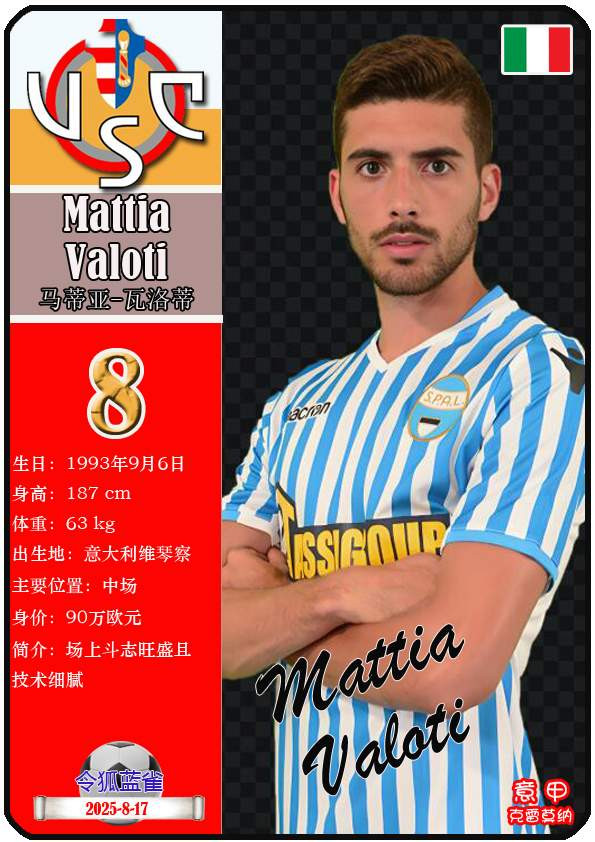 8 马蒂亚-瓦洛蒂(中场/意大利)