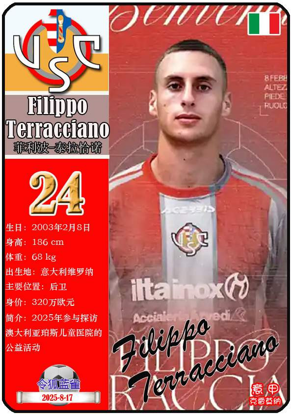 24 菲利波-泰拉恰诺(后卫/意大利)