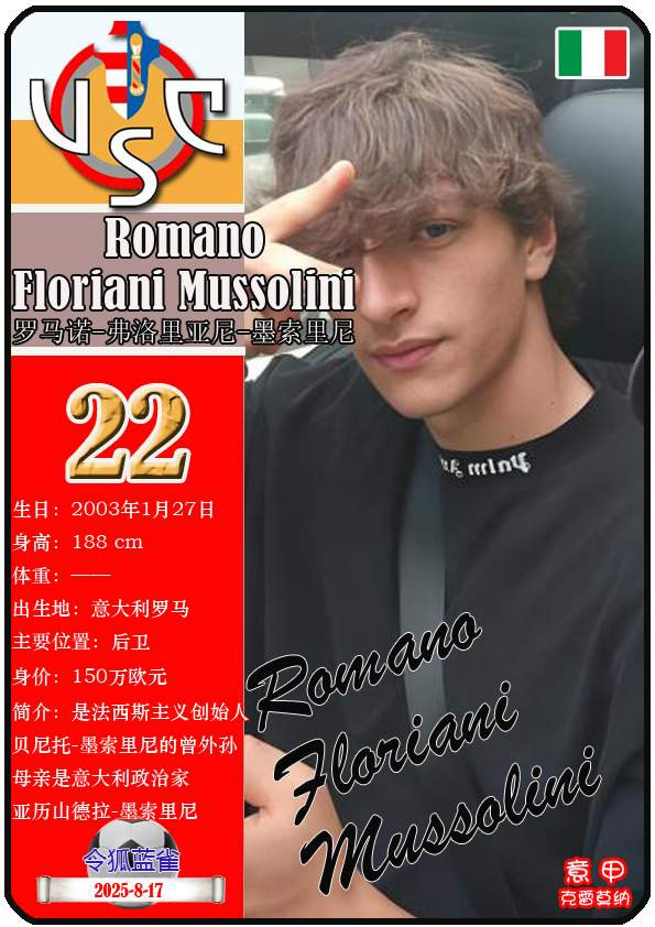 22 罗马诺-弗洛里亚尼-墨索里尼(后卫/意大利)