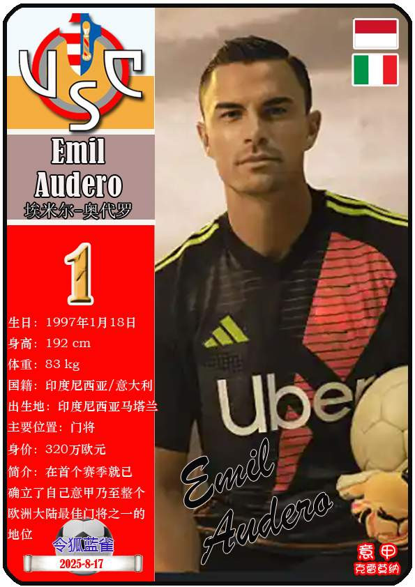 1 埃米尔-奥代罗(门将/印度尼西亚-意大利)
