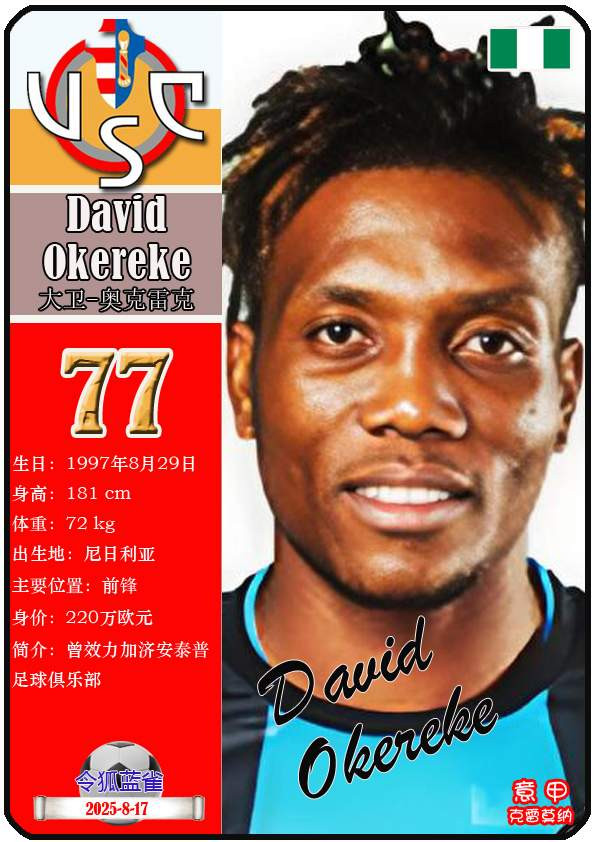 77 大卫-奥克雷克(前锋/尼日利亚)