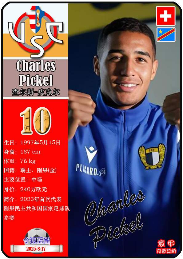10 查尔斯-皮克尔(中场/瑞士-刚果金)