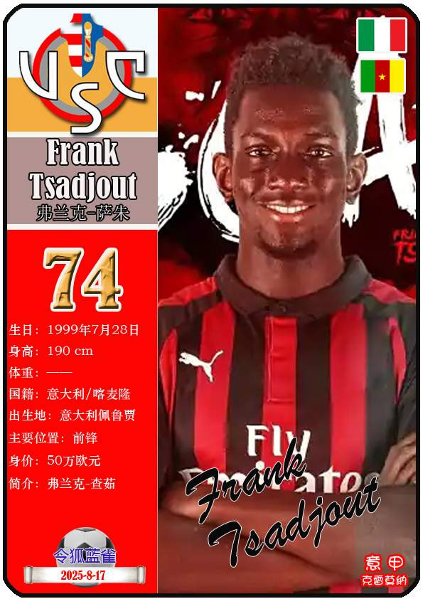 74 弗兰克-萨朱(前锋/意大利-喀麦隆)