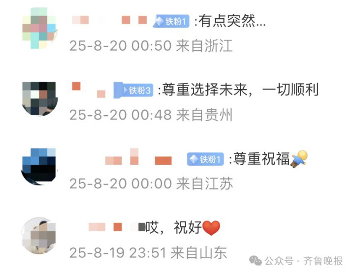 评论区网友纷纷表示很意外,但尊重祝福: