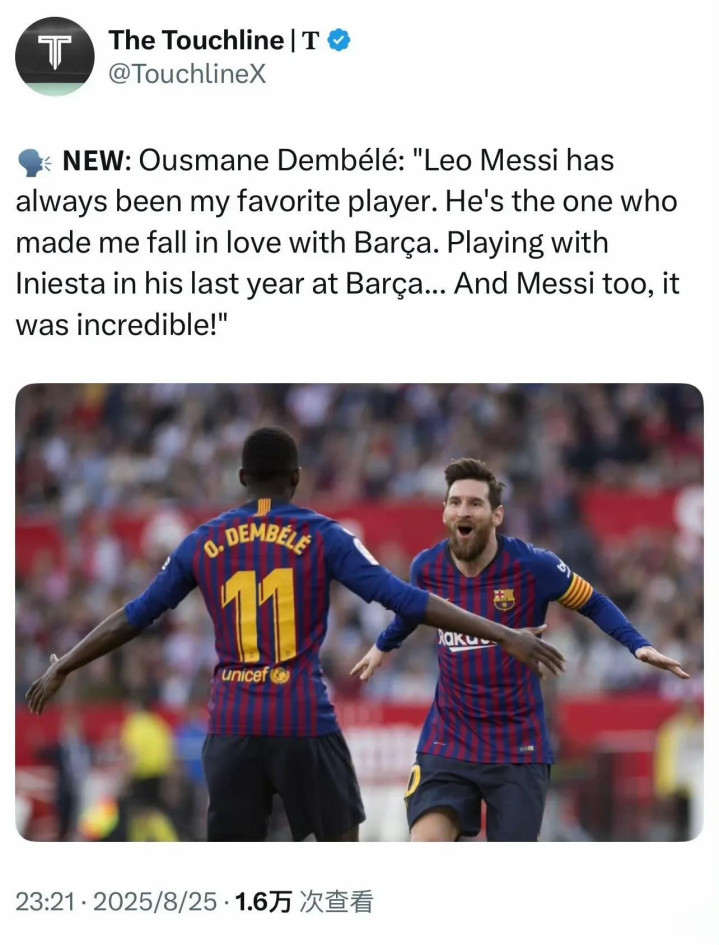 8月26日报道,近日,巴黎球星登贝莱在接受BBC著名记者巴拉格的采访时,谈到了自己在巴萨的经历和有关梅西的话题。