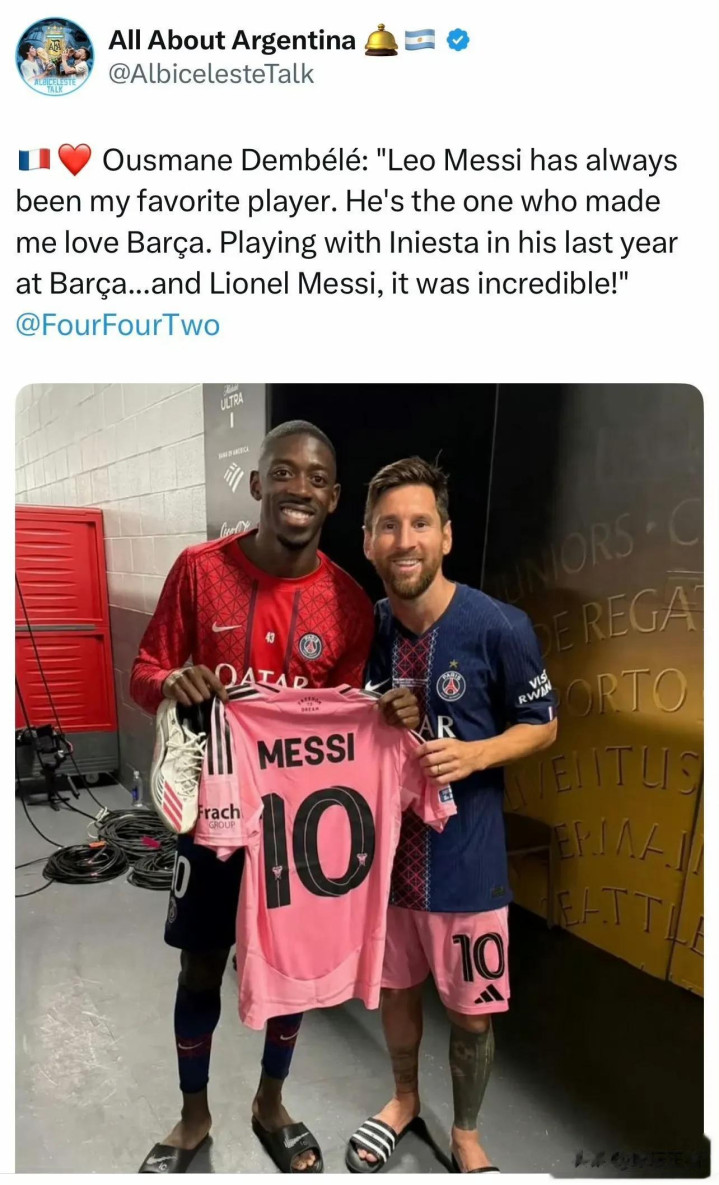 当被记者问到和梅西合作感受时,登贝莱说起从他来到巴萨的第一天起,他和梅西的关系就很好,:梅西一直是我最喜欢的球员。是他让我爱上了巴萨。在伊涅斯塔效力巴萨的最后一年与他一起踢球......还有梅西,这太不可思议了。”
