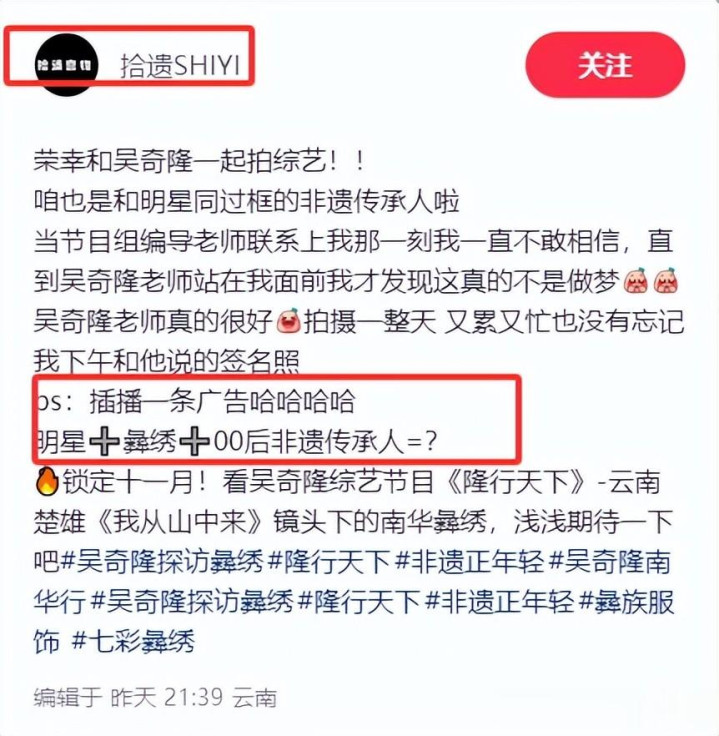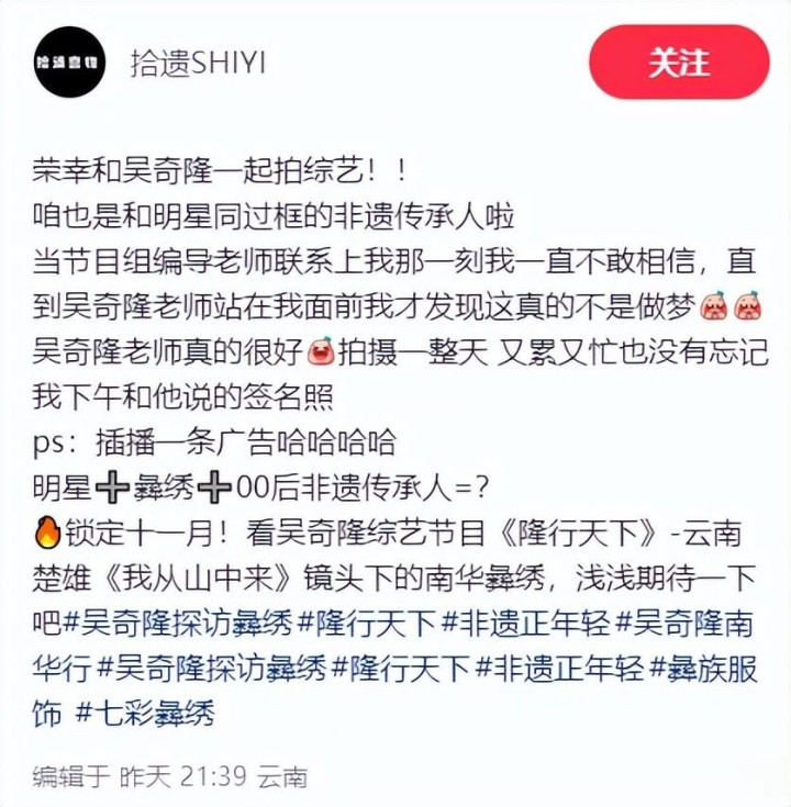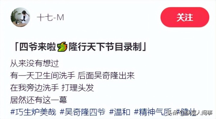 据网友所说,他这是在录制综艺节目《隆行天下》,这部综艺预计在11月播出,所以吴奇隆一刻也不能马虎。