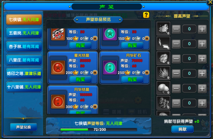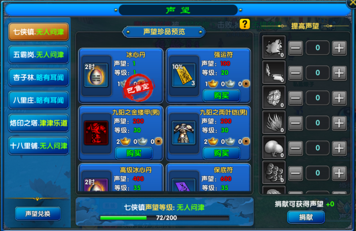 🛒 商店随声望升级:例如七侠镇“崇敬”声望才会出售坐骑进阶丹