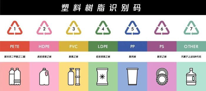 生活中常见的塑料制品,3个箭头组成的环形三角形表示“可回收利用”,中间的阿拉伯数字则代表塑料种类。