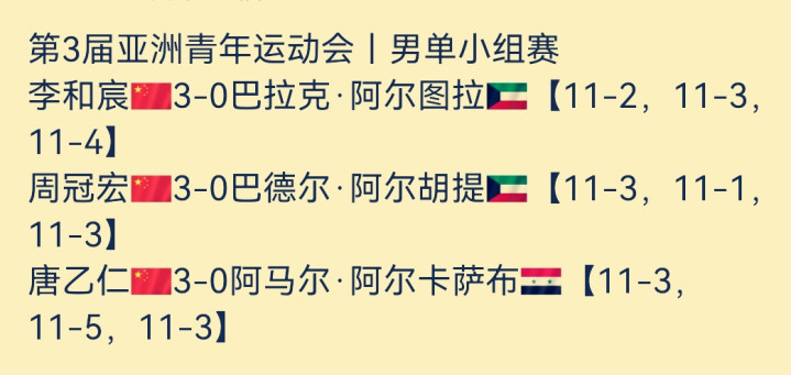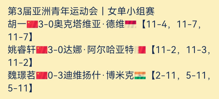 国乒青年组正在征战亚青赛,目前单打小组赛第一轮已经结束,国乒6将5胜1负,都保有晋级希望。