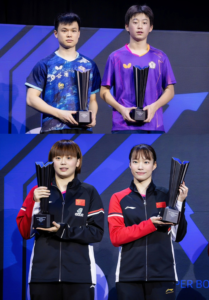 在更早一天结束的两项双打决赛中,中国台北队组合冯翊新/郭冠宏击败港队组合黄镇廷/陈颢桦,夺得男双冠军。国乒组合石洵瑶/张翔宇战胜队友覃予萱/纵歌曼,获得女双冠军。