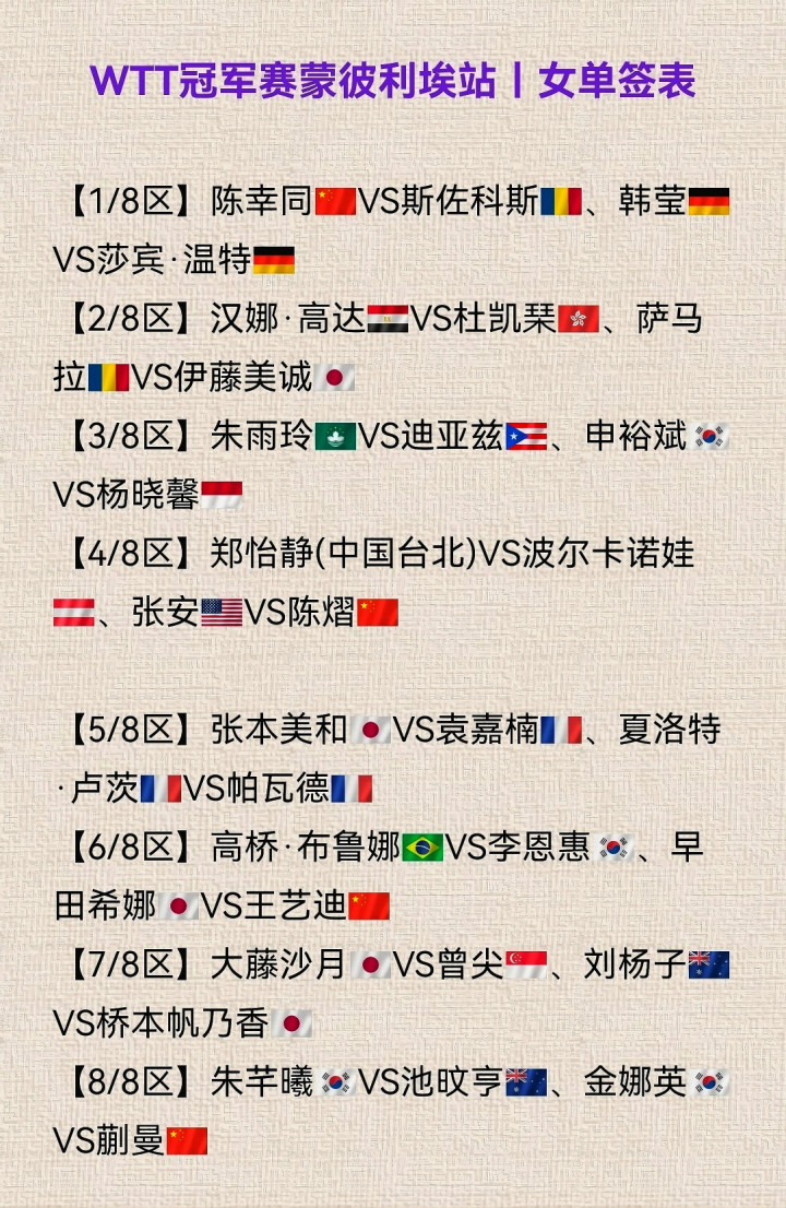 蒙彼利埃冠军赛抽签结果出炉,首轮疯狂上演7场内战,国乒
