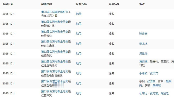 入围了八项大奖,《地母》堪称本届金马奖的最大赢家。而本届金马奖将于本月22日举行颁奖典礼,感觉《地母》会将很多奖项收入囊中。