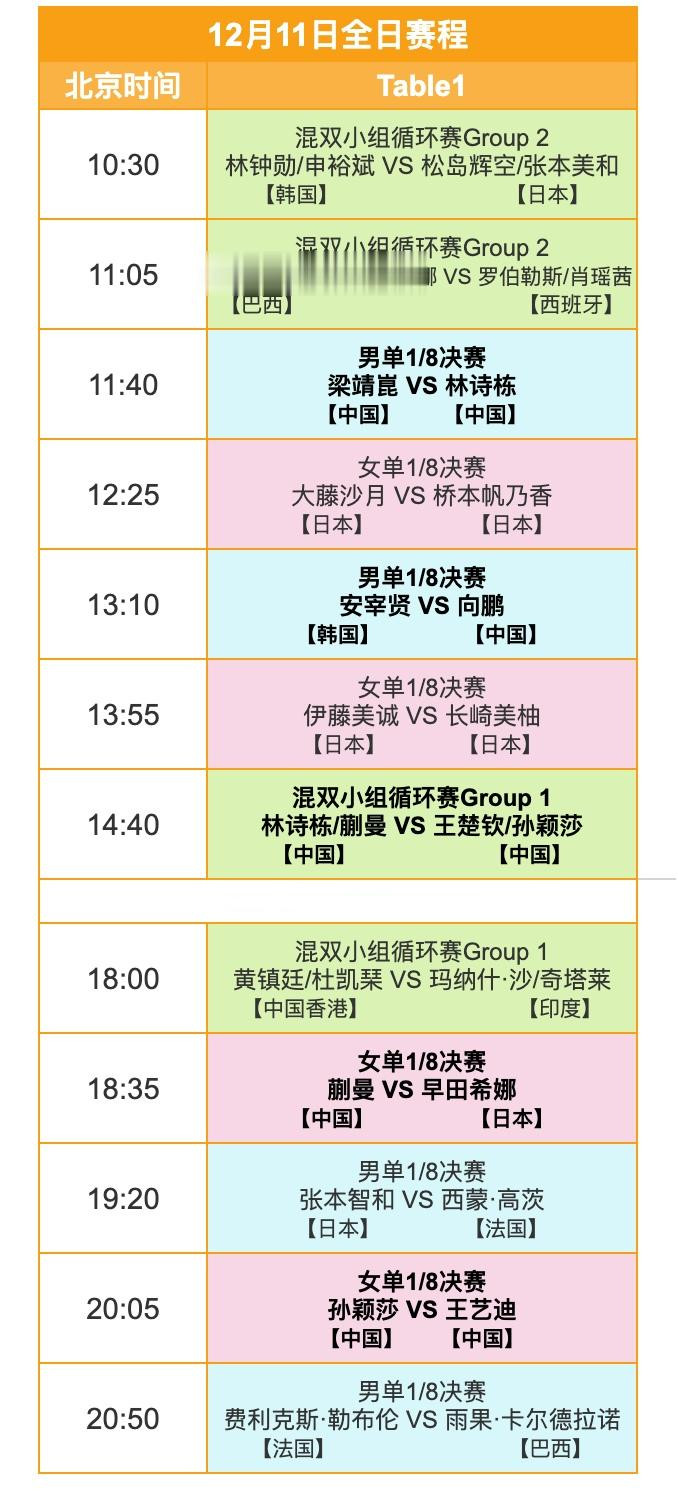 2025WTT香港总决赛热战正浓,北京时间12月11日进入第二比赛日。根据安排,今天全天还是12场比赛,混双完成小组循环赛第二轮,男女单打战线决出全部8强席位。